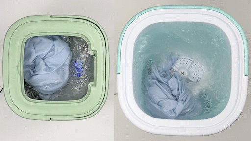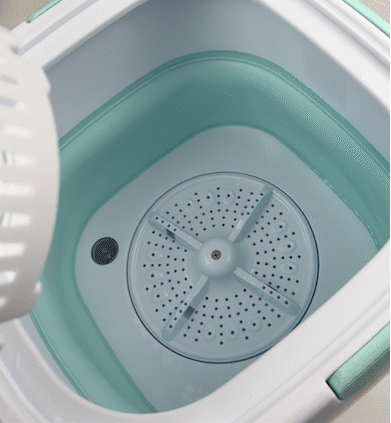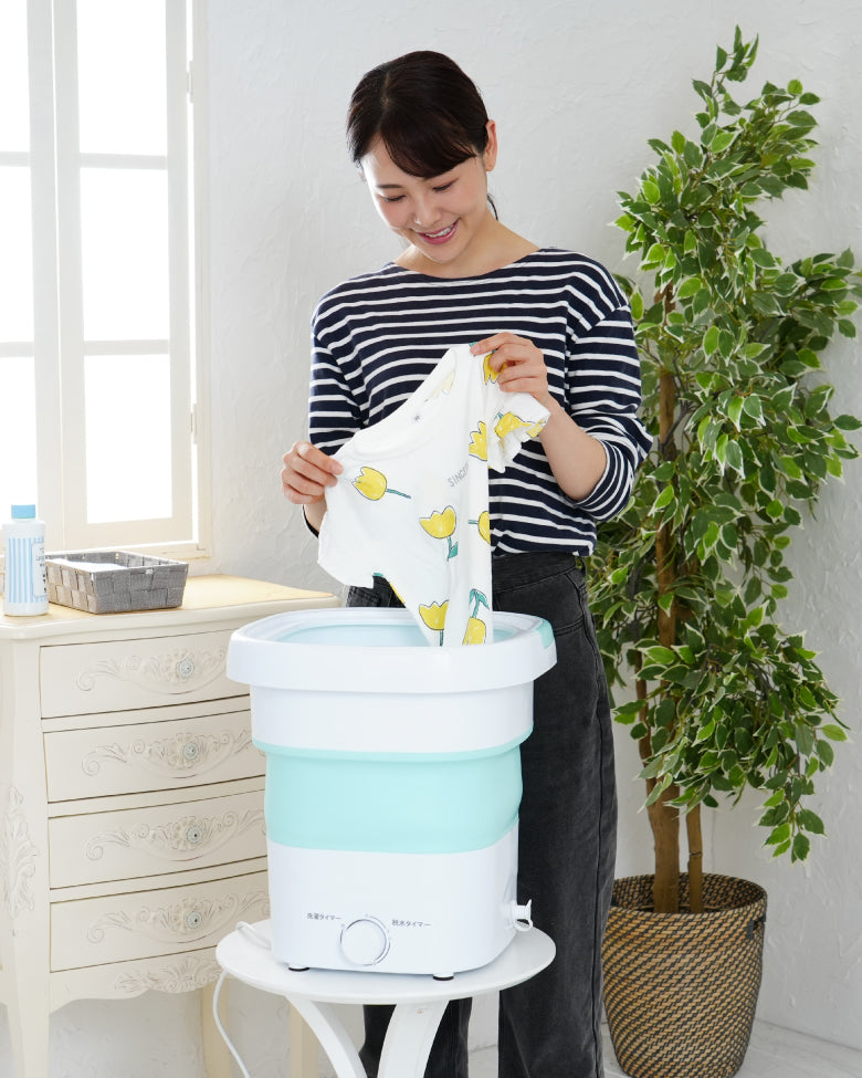少量の洗濯や、汚れた服や靴の予洗いや着け置き洗いにもピッタリな折り畳み式の小型洗濯機。