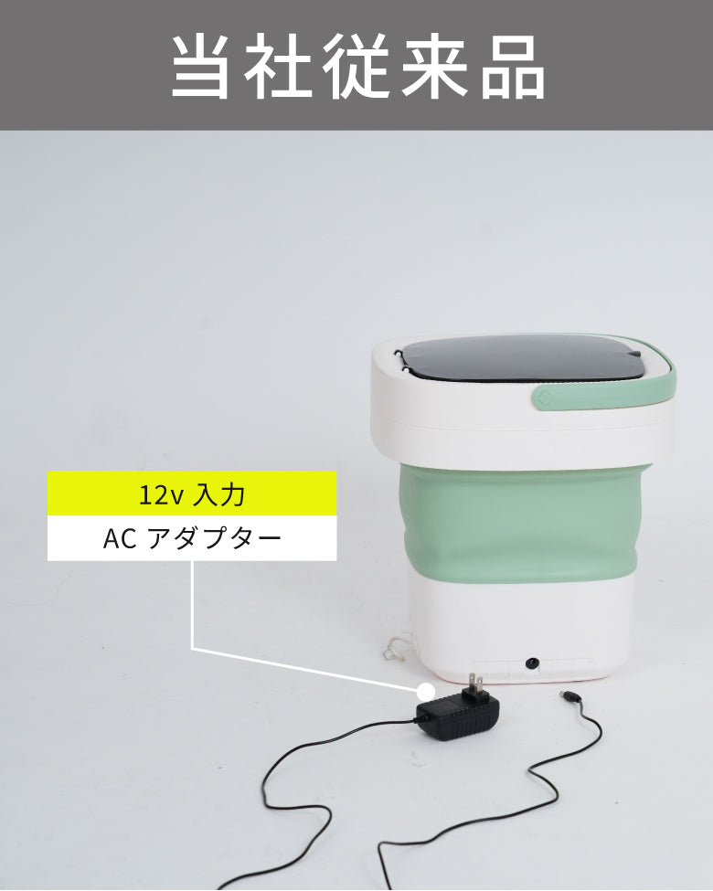 従来品は、電源にACアダプターを利用していましたが、洗浄力の弱さが弱点でした。