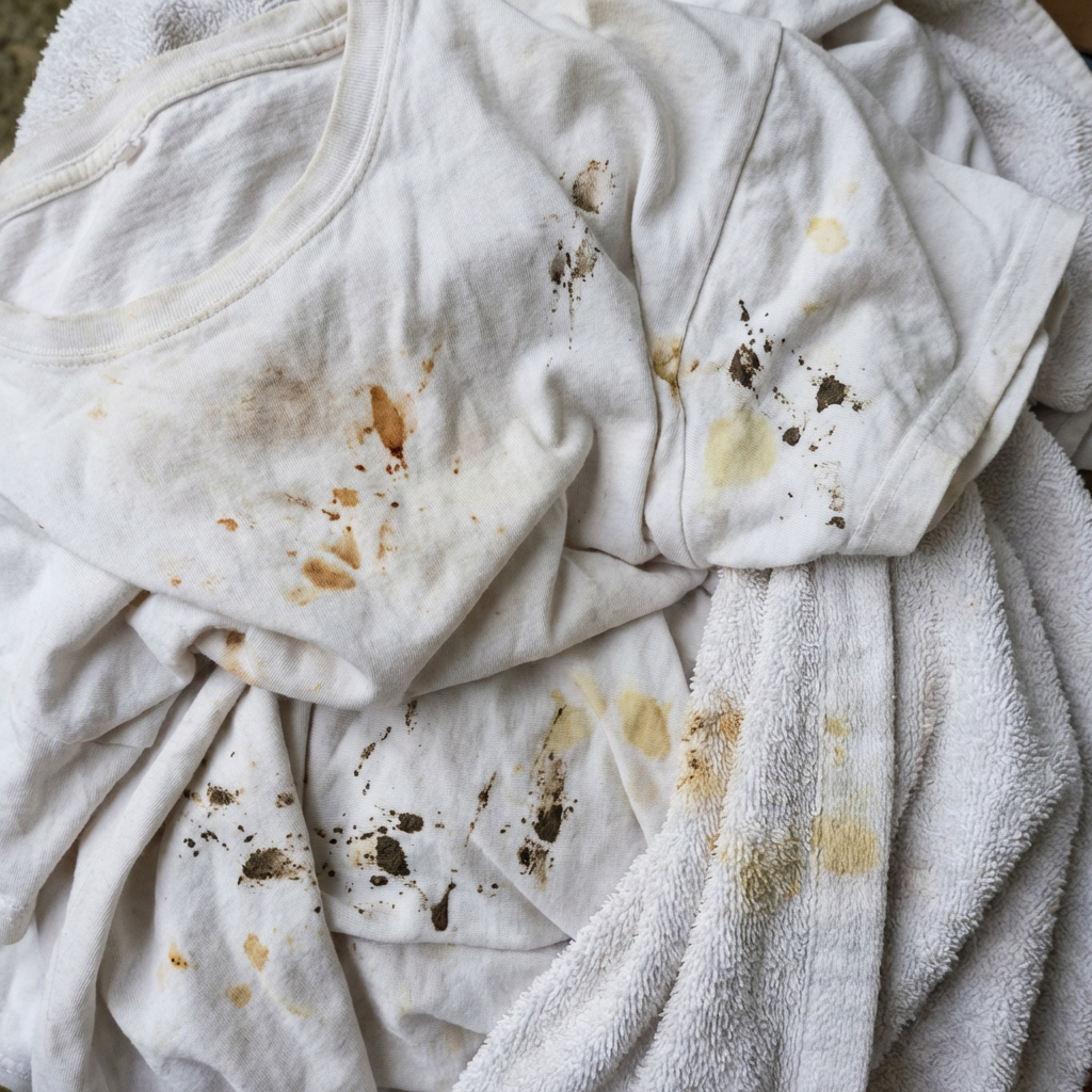 赤ワインや醤油、炭酸飲料で汚したTシャツの汚れも、強力な洗浄力で削ぎ落します。
