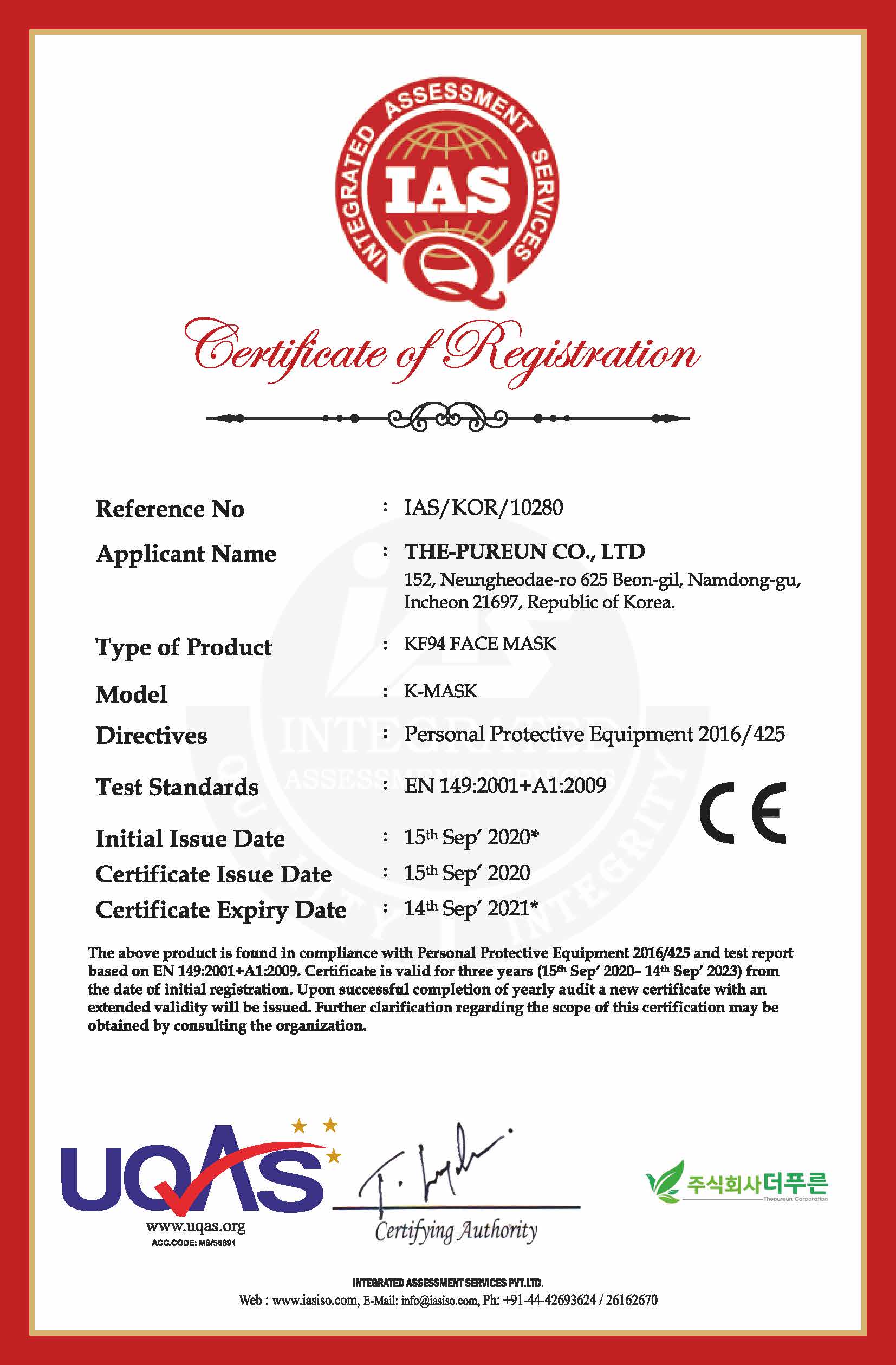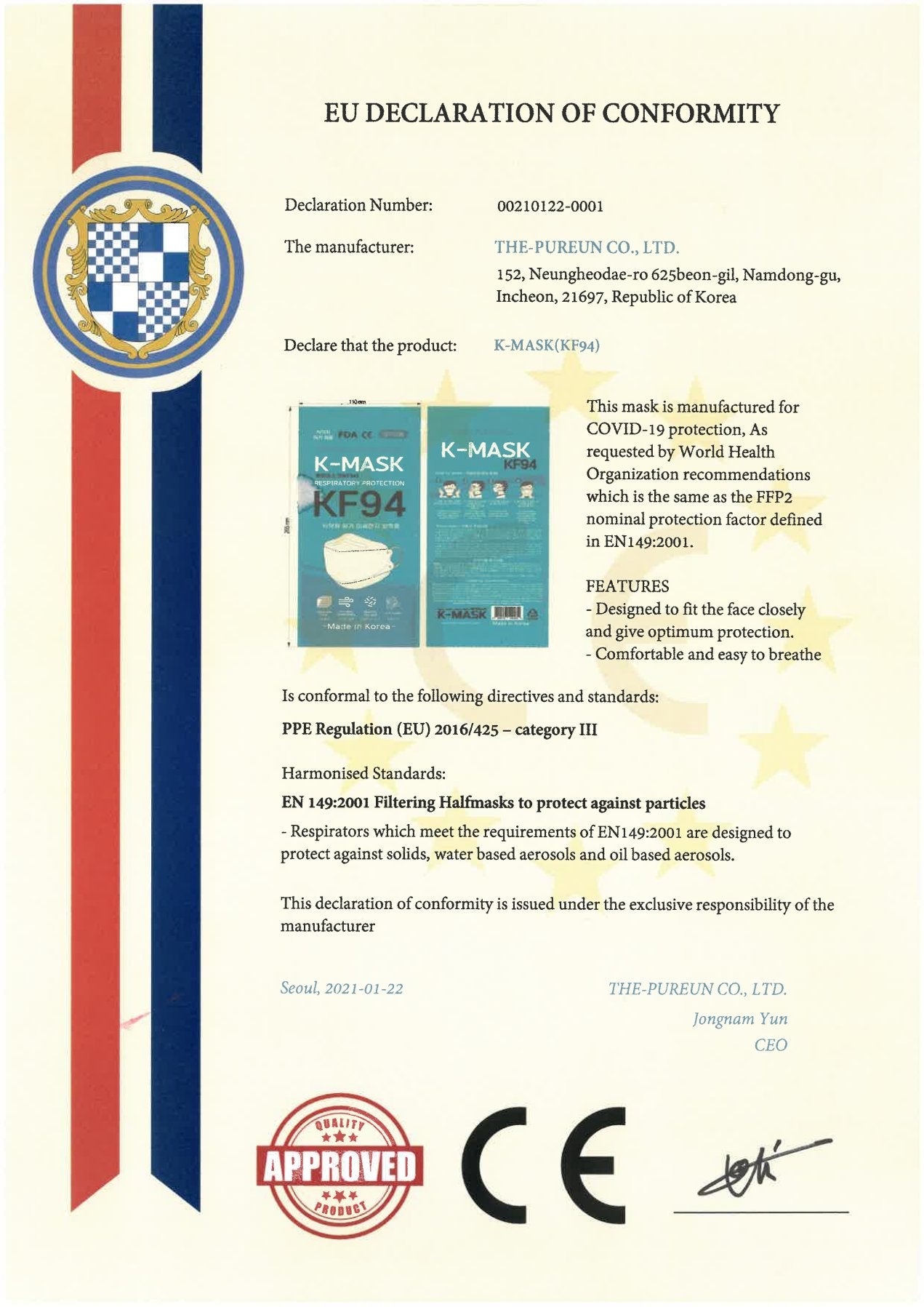 K-MASKは、KF94・CE・FDAの三大認証取得の高性能マスク。