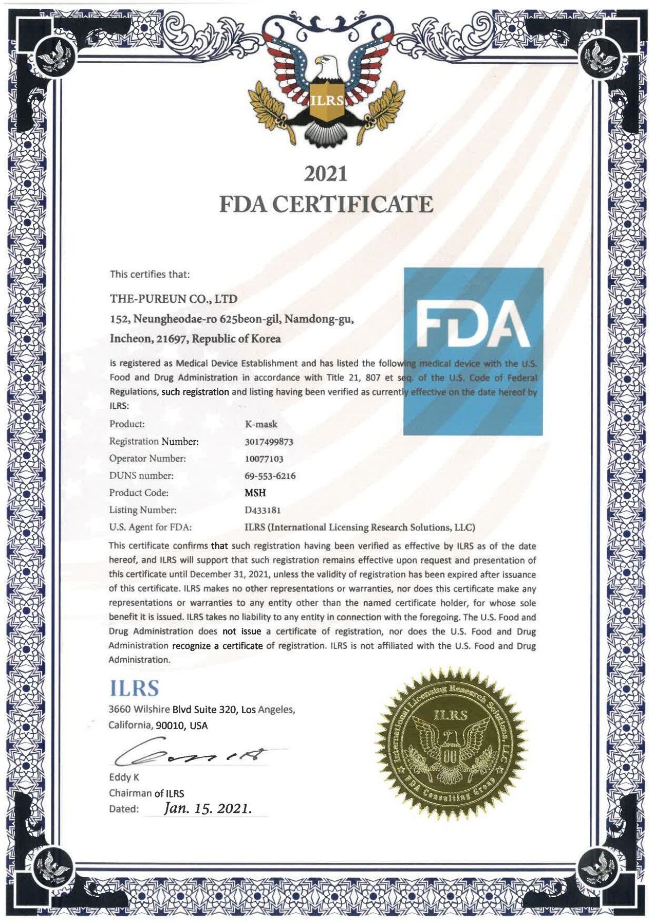アメリカ食品医薬品局(FDA)の基準に適合した FDA認証取得製品 です。